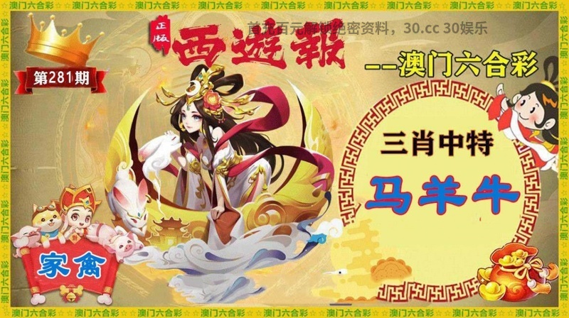 第281期西游谜语 家禽野兽:家禽 七肖:马牛猴羊狗鼠鸡 |